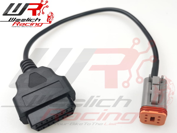 This OBD2 harness allows you to connect to the 6 Pin KDS Diagnostic Plug on the bike and read and clear fault codes using a OBD2 Diagnostic Scanner.